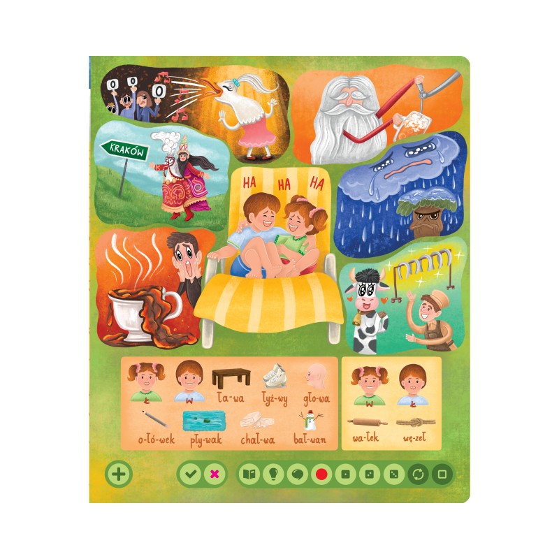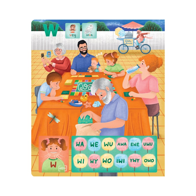 Razem z nimi poćwiczysz mówienie kłopotliwych głosek i zagrasz w grę planszową.Pozycja ta, opracowana przez neurologopedkę, nie zastępuje terapii logopedycznej, a jest pomocą w nauce poprawnej wymowy głosek ciszących ś, ź, ć, dź, głosek dwuwargowych p, b, m, głosek tylnojęzykowych k, g oraz głosek t, d, f, w.