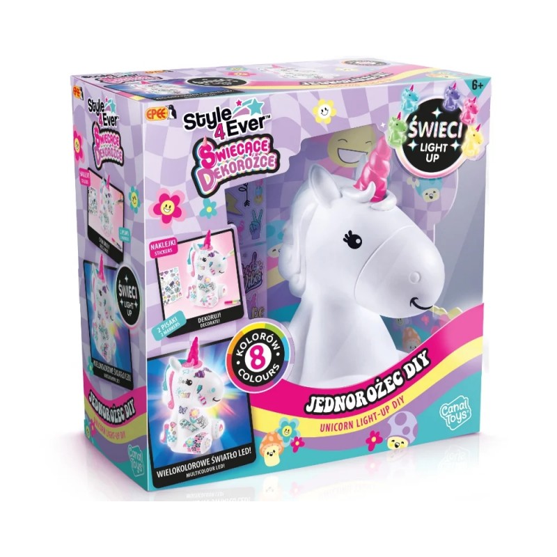 Świeci w 8 kolorach, tworząc niepowtarzalny bajkowy klimat. Świecące Dekorożce to nie tylko świetny pomysł na kreatywną zabawę w domu, ale także doskonały prezent dla miłośników DIY i dekoracji.